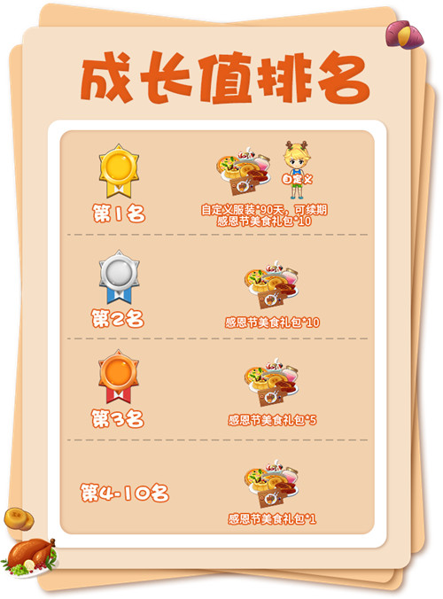 感恩节美食礼包(奖励均为绑定):