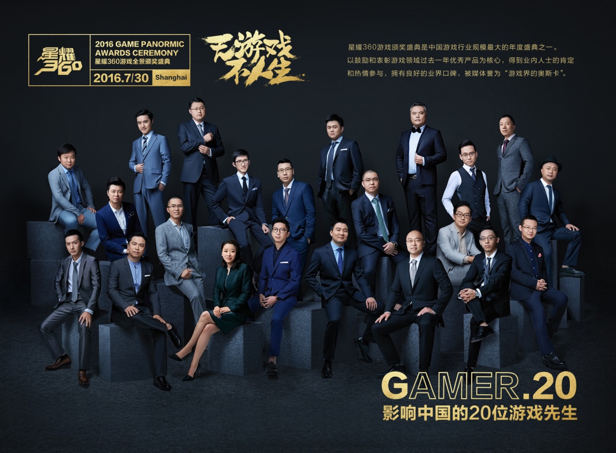 2016年星耀360率先亮相的中国游戏榜样是“Gamer 20“——影响中国的20位游戏先生。他们是中国游戏产业的开拓者,创造并见证了游戏产业的发展,与此同时,他们对游戏的判断与审美,正影响着中国人的娱乐生活。我们需要感谢每一个执着的游戏人,是他们改变了游戏,是他们的坚持与守望,中国游戏才有了今天的成长与辉煌。