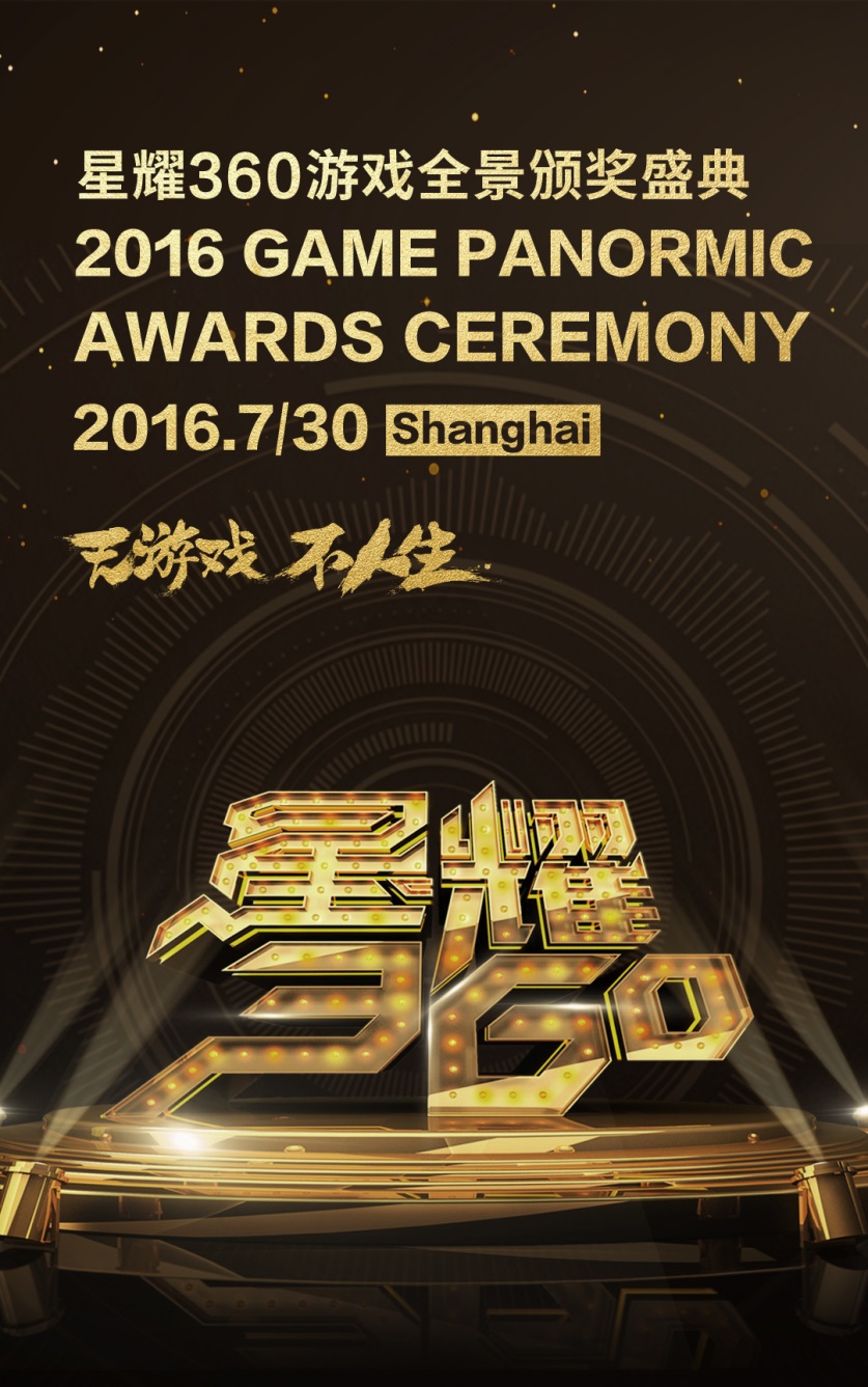 2016年,是“星耀360游戏颁奖盛典”的第五年,将在7月30日上海世博中心隆重举行,本届盛典以“无游戏 不人生”为主题,将回顾中国游戏过去20年的发展历程,展示优秀的中国游戏人为整个产业所作出的卓越贡献,鼓励过去一年优秀的游戏作品,展望未来发展空间。