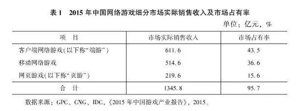 随着时代的发展,端游在网游市场上占据的份额比例开始逐渐下降。据统计,2015年端游在网游细分市场实际销售收入占比为43.5%,总收入为611.6亿元,虽然仍占据近半壁江山,然而近年来兴起的移动游戏却奋起直追,超越占比15.6%的页游,达到36.6%的市场占有率,实际收入达到了514.6亿元。走路时拿着手机摆弄的“低头族”也逐渐遍布城市的街头巷尾,智能机风潮兴起之后,碎片时间里,人们已经陷入手游之中无法自拔。