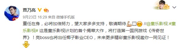 当前明星做手游公司的老板早有案例,明星自己开娱乐公司更是屡见不鲜,但像贾乃亮李小璐夫妻这样,身兼游戏公司股东和影视公司老板两个角色的情况就不多见了。早前亮璐夫妇就以股东身份加盟椰子游戏,并透露将亲身参与到《传奇世界》的网络剧项目中去,如今两人兑现了当初的承诺,而且更进一步,以椰子影业CEO的身份“深度加入”,尝试走出一条娱乐明星主导“影游联动”的全新路径。首创之举,令得贾乃亮本人倍感责任与压力,他在微博表示:“重任在身,必将加倍努力,望大家多多支持,敬请期待。”,充分展现了他对椰子游戏和椰子影业充满信心和使命感。