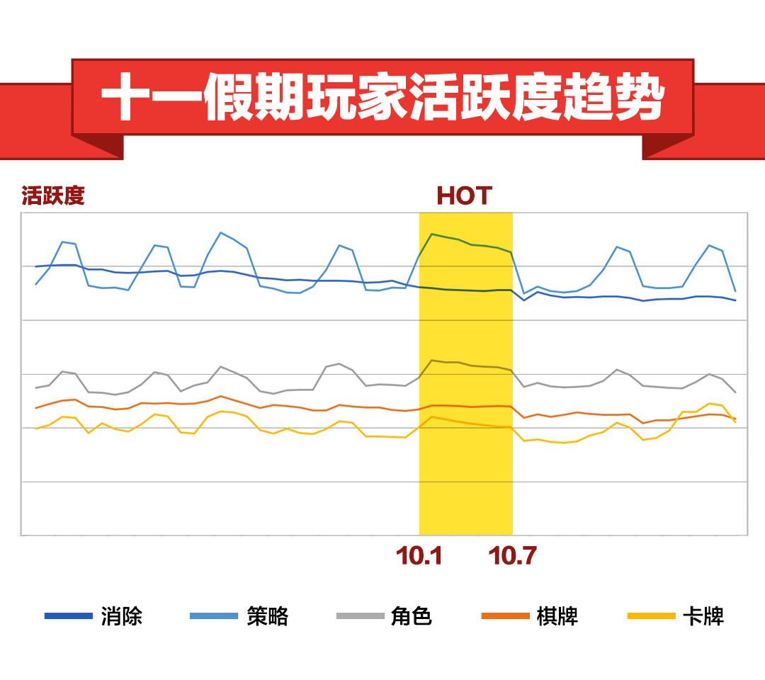 国庆假期,除朋友圈在进行着一场摄影大赛,各手游产品之间也上演着一场玩家争夺战。在今年的十一长假期间,哪类游戏的玩家表现最活跃?哪个时间段是游戏推广的“黄金期”?