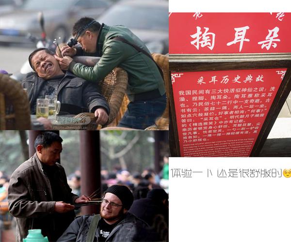 掏耳朵也算是成都一大特色,小编有一年在成都,便享受了这个掏耳朵,整个过程神秘而刺激,引得不少外国友人纷纷体验。