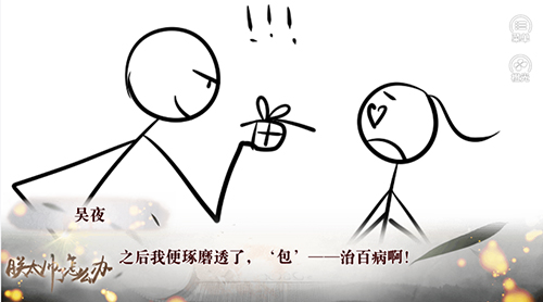游戏《朕太帅了怎么办》由橙光签约作者喵魄制作,2016年7月发布,主打搞笑逗比风格,讲述一个花心男意外穿越到古代成为高冷国皇帝的故事,坐拥嫔妃三千和文武百官,眼睛一眨全国人民都倾倒在他的石榴裤下。游戏自发布以来运行人次已达55万,作者喵魄本人凭借诙谐的风格、稳定的更新赢得5万余名粉丝的青睐和追随。
