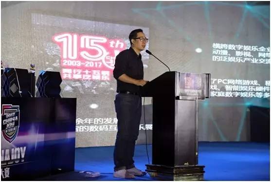 之后,绍兴盖奇体育文化发展有限公司副总经理任立代表本届大赛承办方对2017 ChinaJoy电子竞技大赛进行了详细介绍,阐明了赛事成立的重要性。魔兽世界冠军人皇Sky也代表钛度科技通过视频祝贺本次赛事顺利启动,并相约所有决赛选手ChinaJoy现场见!
