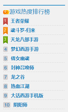 通过《中国游企版图》的游戏热度榜,我们可以发现占据榜单前十的主要还是已有较高知名度的老游戏,榜单内的新游戏屈指可数。同时,在热度榜中这些知名度较高的游戏热度也有不同比例的下降。以网易的《阴阳师》为例,半年以前的《阴阳师》曾与霸榜多时的《王者荣耀》一时瑜亮,也曾出现在《中国游企版图》热度排行榜的第一名。但由于游戏运营商的运营活动不够丰富加之游戏本身调性单一等问题,《阴阳师》正在逐步淡出热度游戏排行榜前十。
