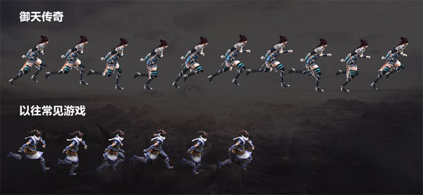 同时,《御天传奇H5》在角色动作上做到了突破性的优化,单动作帧数从常见的6-7帧优化到了10帧以上。角色动作表现更加流畅,大大缩小了H5游戏与主流手游的差距。