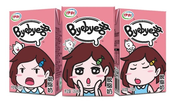 广受年轻网民喜爱的Byebye君是一个可爱的萌妹子,诞生于互联网,生活在二次元,最爱说的话就是:“没有一盒奶解决不了的事!“ 目前旗下共两款产品,分别是Byebye君纯牛奶和Byebye君脱脂奶。
