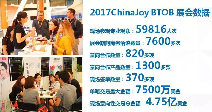 ChinaJoy BTOB综合商务洽谈区作为ChinaJoy展会重要的组成部分之一,是目前亚洲泛娱乐领域综合实力最强、参展企业最全、展览面积最大、接待观众最多的专业展览及现场商务洽谈活动。此外,ChinaJoy BTOB综合商务洽谈区也是目前开展中国游戏产业专业版权交易、版权合作、联合开发、联合运营等业务的重要商务平台,具备功能完善的在线商务服务系统,辅助参展企业和商贸观众进行线上、线下商贸互动。