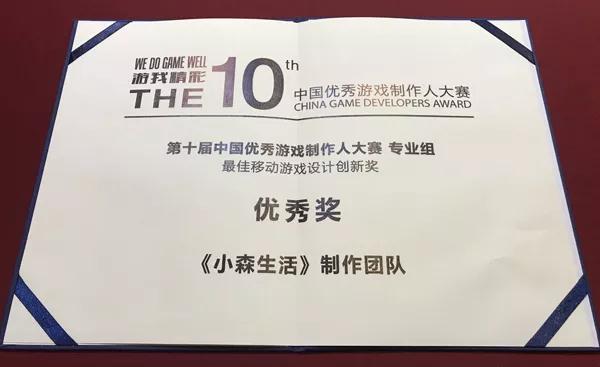 在同日举行的优秀游戏制作人大赛(CGDA)颁奖典礼上,盛大游戏《传奇世界手游》制作团队获得“最佳游戏数值平衡设计奖”;《小森生活》这款由盛大游戏发行,上海睿逻网络科技有限公司研发的田园画风的治愈系手游,制作团队获得了“最佳移动游戏设计创新奖”。