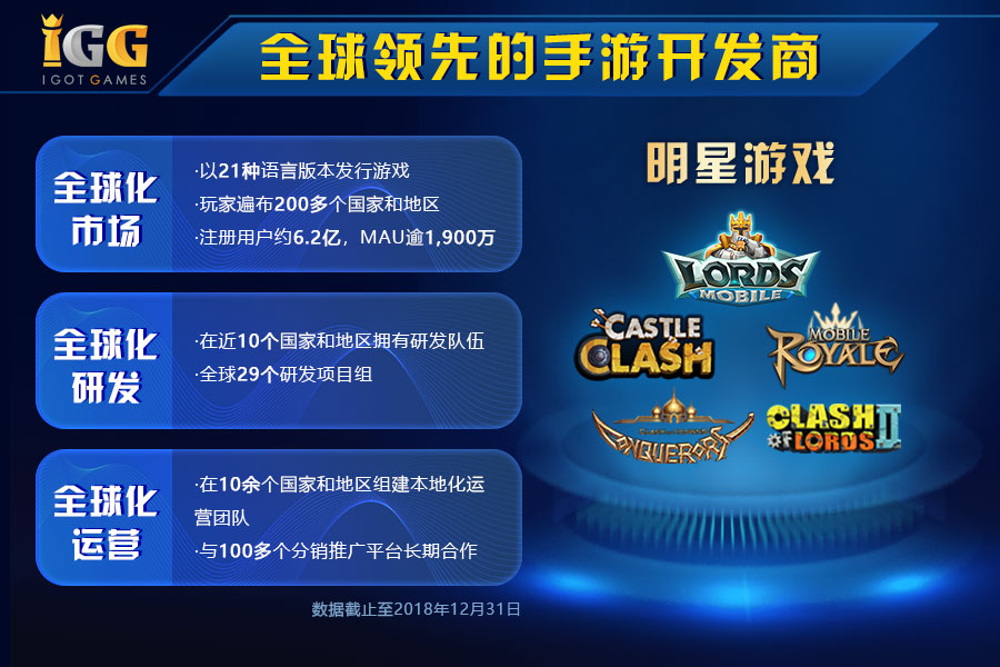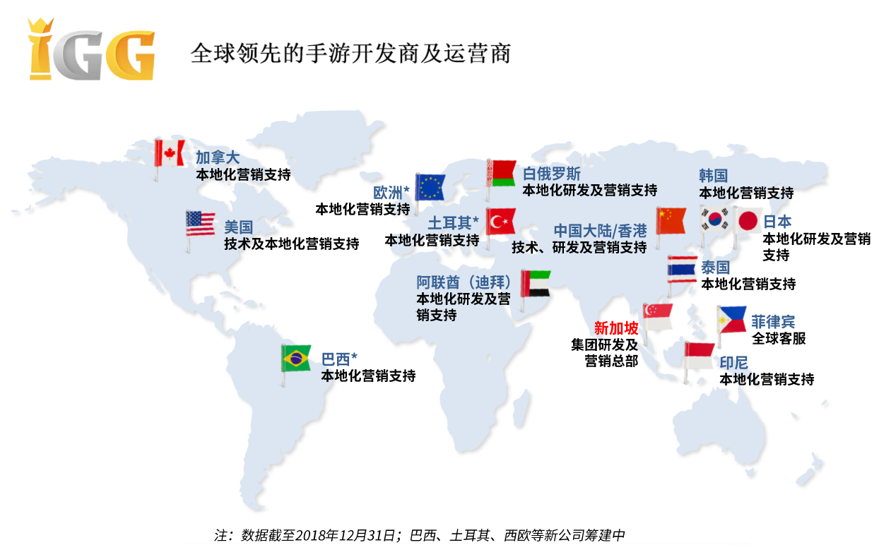 多年来,IGG始终坚持布局全球市场,坚持“全球化研发、全球化运营及全球化市场”三管齐下,目前已在全球10多个国家和地区设有分支机构,组建本地化研发和运营团队,并仍在持续拓展和加强中。