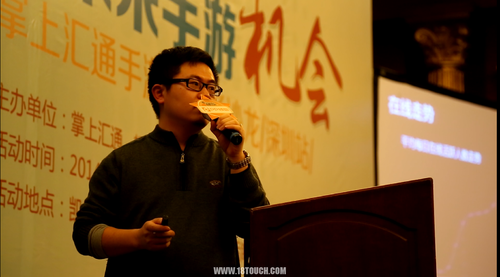 iTools COO苏瑞林演讲主题是中重度游戏霸榜,苏总重点阐述了对2015年手游行业的几个观点。第一,重度ARPG游戏成为2015年的手游主力军,第二个观点,现在对于优质渠道资源的占有方面,大厂商确实有非常大的优势,这点对于中小厂商来说压力是巨大的。