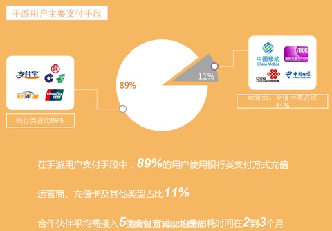 与此同时,我们做了一个统计,游戏支付平均需接入5类支付方式,而每一类的上线时间需要2至3个月。