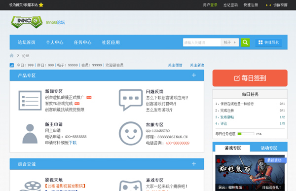 搭建用户与开发者的交流平台,成就更好的精品VR应用,创客VR论坛成为重要的沟通枢纽。它是集用户交流、活动发布、创意策划、众筹前端、任务发布等功能的交流平台。也为普通用户、开发者、广告商、合作商、众筹支持者等提供了集智的空间,同时也为创客眼镜提供了产品、平台以及内容体验提升以及服务质量提升的交流窗口。