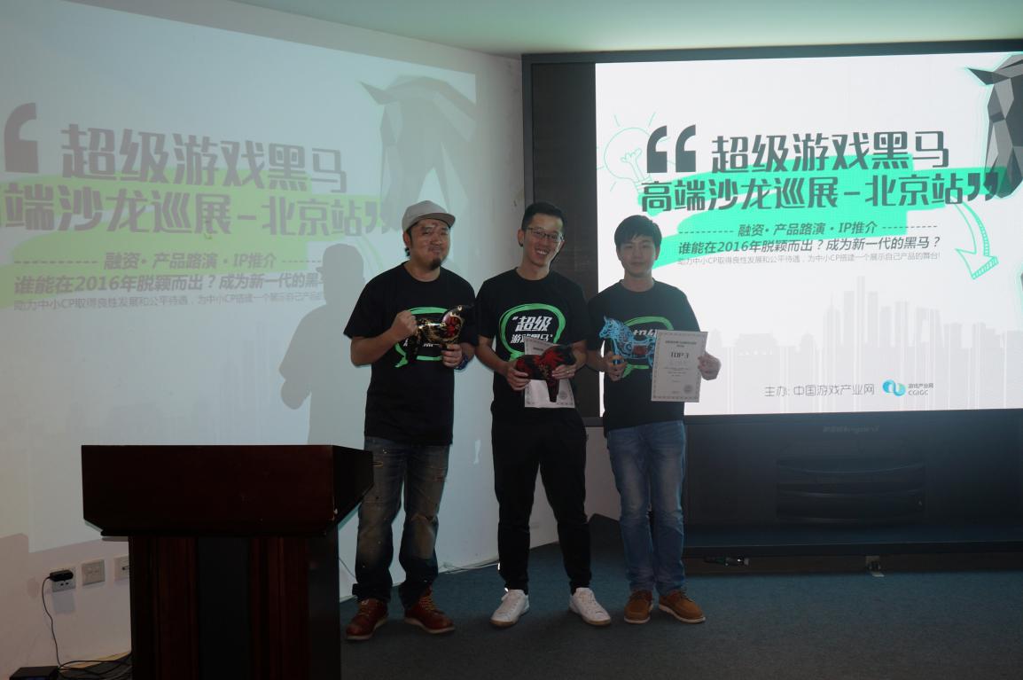 12家参与路演的团队在现场展示了自己的产品。作为嘉宾,红杉资本中国基金董事总经理曹曦、网易资本投资经理王珊、蓝港互动副总裁王世颖、星河数字娱乐基金主管合伙人牟敏、胡莱游戏战略发展总监雷绍满、陌陌游戏商务总监王雪、华谊兄弟高级经理刘爱华等点评嘉宾通过认真分析,投票,选出了前三名。番茄游戏的《乱斗酷跑》获得第三名,收获了蓝麒麟奖杯、硬核动视的产品《致命机甲》以其卓越的画面表现力获得第二名,领取火凤凰奖杯、此起互动文化公司陶瓷骑士开发组带来的SpookMash以其超凡品质力拔头筹,被授予象征第一名的金龙奖杯。现场嘉宾和观众以热烈掌声对他们表示祝贺。