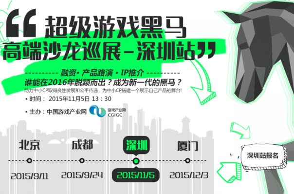 “超级游戏黑马“系列沙龙活动【深圳站】火热报名中: