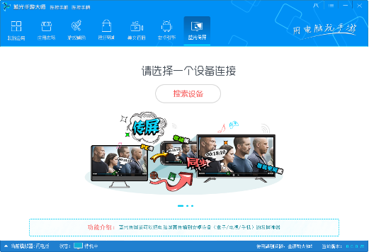 蓝光手游大师所开发的蓝光传屏软件,能够让用户在更大的屏幕上观赏电脑屏幕的内容。安装蓝光传屏软件之后,在电脑上通过网络找到最新的电影资源,然后把电脑屏幕传输到比方说电视这样的大屏设备上,就可以体验到大屏清晰的视觉体验。