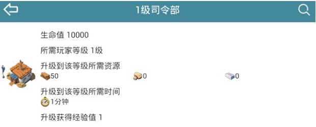 海岛奇兵一级司令部详细数据