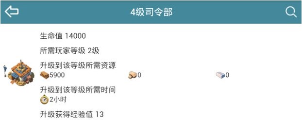 海岛奇兵四级司令部详细数据