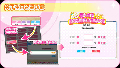 活动内容:玩家通过设置生日,可在生日当天,收到社员的生日祝福纪念语音