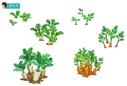 顺利经过或长或短的生长期,各种作物才会迎来成熟的时刻。小森的蔬菜植物种类非常多,营养丰富的黄瓜,成熟的时候会啪叽——从藤蔓上落下来。绿油油的芹菜,一茬茬茂密生长。