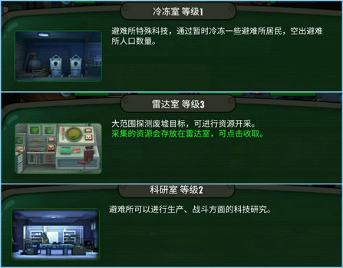 一、 “冷冻室”,如果对英雄收集欲望很强,一定要及时的建造它。它可以将暂时不需要的英雄进行“冷冻”,以帮助监督者减轻人口负担,招募用途更大的英雄进入避难所。