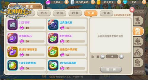 在女神节到来之际,我们在游戏内新增水晶商城。在水晶商城中,各位萌主大人可使用水晶兑换自己所需的一些游戏道具。在水晶商城中,不仅有各种品质的强化石、精炼石以及多彩宝石等。