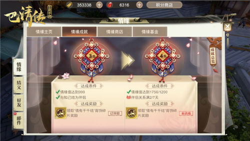 此外,通过完成情缘任务,积攒情缘值达到999,即可领取千千结碎片。