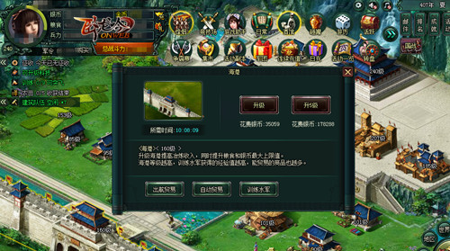 《卧龙吟》中原本的海港在更新后成为了主城中的其中一个建筑,删除了部分玩法后保留了水军训练的等级给武将带来的增益效果,主公还可在海港中继续训练水军。出航贸易玩法也同样保留,确保主公的资源来源不会在游戏的变更中减少,当然在航贸中的打劫依然可以进行。