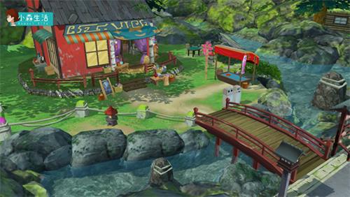 再往前走有一座枫色长桥,红顶石灯笼矗立于清澈池水边,石头与青苔错落,一片苍翠笼罩下的是一方古朴庭院,这里是神隐婆婆的杂货店,婆婆站在门口晒着太阳,看到往来的孩子,都会打个招呼,笑容都是暖洋洋的。前面拐个弯,就是村子的广场了,要是在村子里逛累了,可以坐在这里的村子里晒着太阳,吃着红豆饼,在秋千上晃呀晃,好像一切烦恼都烟消云散了。