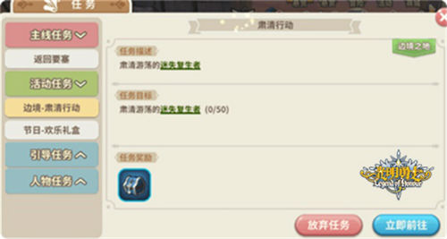 不仅如此,在边境之地内每天都会有每日任务等待勇士们去完成,任务将随机要求勇士肃清边境之地的某种怪物,完成后可以获得经验、公会荣誉等奖励。不过,需要留意的是,如果是第一次进行任务,需要先完成总司令莫里斯处的引导任务才会开启~