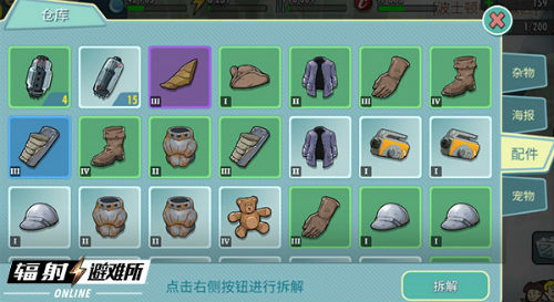 制作所需的材料,来源于配件的分解。在仓库中的配件页签中,点击右下角的拆解按钮,把你不需要的配件拆解掉。