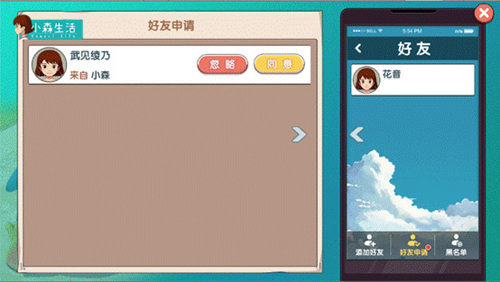 打开手机,点开好友,会有添加好友、好友申请和黑名单三栏。看到有新好友申请,就赶快通过吧!有了好友的加持,探索小森的旅程或许会更加轻松哦!