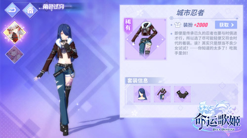 成年人的世界,总是各有各的无奈,各有各的隐忍。抛却懵然无知的童年时代,天生叛逆的青春期或许会是人生中最为怀恋的时代。完全释放自我,随性而又洒脱。《命运歌姬》此次更新服装的风格简直就是为了青春量身定制。帅气的夹克,破损的牛仔裤,轻盈的短裙,高低的丝袜,豹纹的装饰,还有还有闪闪发光的大金链,无一不是备受瞩目的潮流衣着,这一次让我们共同享受一次属于我们的叛逆,做一回潇洒的不羁少年(女)。
