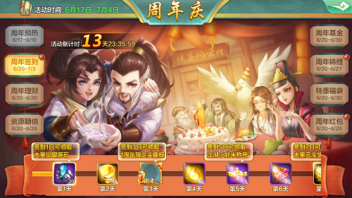 随着预热的结束,6月20日系列正式活动将无缝对接,“周年签到”除了有每日奖励外,还能通过连续签到获得额外的稀有阵法奖励。“资源翻倍”的福利则更加直接,在6天时间内,铜人试炼、丹炉试炼、宝藏王、蟠桃宝箱、情缘玩法、公会捐献等玩法都限时开启双倍奖励。
