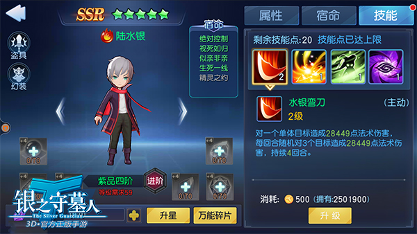 神秘老人陆游七、5亿玩家陆水银、以及玉馆、铁墓、银背等实力盗团及成员均会出现在游戏当中。每一个出场人物的技能设定、神陵武装、盗具都将按照原著的设定还原,并且完美适配游戏玩法。 此外《银之守墓人》手游还根据原著人物关系,在游戏中设置了特殊的宿命系统,不同人物组合将带来不同的属性加成,原著的人物羁绊与游戏玩法完美融合。