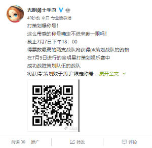 目前,玩家最喜爱战队投票火热进行中,大家可以从32强战队中投票选出自己最喜爱的战队,截止7月7日下午18:00,得票数最高的两支战队将获得pk策划的资格!与策划战队同场竞技,看是32强队伍更强,还是策划对游戏更了解!大家可以通过贴吧,公众号,微博等渠道,为自己支持的战队献上宝贵的一票!