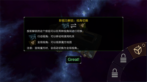 《布林机》的游戏关卡由易到难,而不论游戏难易,玩家都需要通过操作“视觉切换”按钮,缩放画面的大小,观察整个魔方地图,并通过旋转魔方地图观察路径,提前规划接下来的行动,从而灵活的躲避敌人机器人以及机关陷阱,达到方便快捷的通关。随着游戏难度逐渐提高,视角切换对于玩家通关的用处也越来越大,细致入微的观察能力结合运筹帷幄的大局观才能最大程度体验到游戏解谜的乐趣。