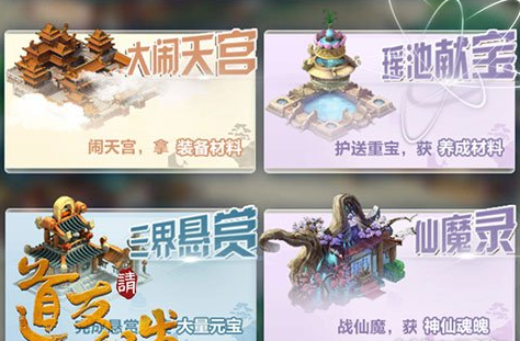 西王母此番盛宴,四海众生都以礼相送,但不乏一些公务缠身的仙人们不能前往,只能请道友们代劳送去啦,但是护送途中,会有妖怪劫宝,难免要引发一场恶战。玩家们达到32级即可开放此玩法,每个道友每日拥有2次运宝次数,每次运宝需要消耗一定的体力。
