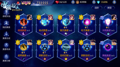 《雪鹰领主》手游中的真意,还可通过升星和觉醒来提升属性。玩家可在天穹牢狱活动中获取元素奥妙为真意升星,还可在登云塔或云雾杀阵中获取归元珠让真意觉醒。真意觉醒获得的属性,可通过真意传承转移给其他更高品质的真意,一点也不用担心浪费。