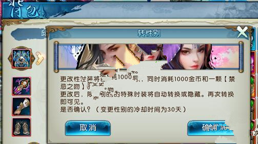 诛仙手游转性别条件:无配偶。不在飞天状态。不在骑乘状态。不在交互状态。不在组队跟随状态。距离上次转性别≥30天。使用道具“禁忌之吻”并消耗1000金币。诛仙手游想要转性别,需要满足上面的条件,然后转性通过之后好友都会收到系统的邮件提醒。