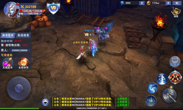 进入副本后,会有大量怪物按照波次刷新出来,它们会攻击地图中的宠物商人。我们的任务就是保护宠物商人,并且击杀怪物。