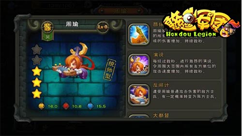 如果你喜欢当统帅那长壮有姿貌、精音律的周瑜肯定是你的不二之选 。游戏中周瑜的统帅能力高达16.0,他发出号令,令周围大范围内的所有友方单位,普遍攻击所造成的伤害增加,持续数秒。