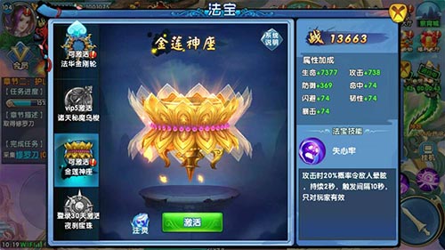 不管什么游戏,装备往往是能够直接的提升战斗力,而在《紫青双剑》手游中,玩家还可以通过激活不同法宝来获取更高战力。在玩家达到一定条件时则可以激活相应法宝,同时点击法宝出战即可在唱歌镜中显示,而注灵可以提升法宝属性,每层的最后一级需要进行突破。当法宝突破后就可以为玩家带来丰富的属性加成,让玩家在各种游戏模式中如鱼得水!