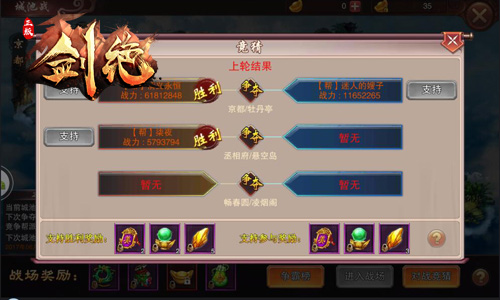 最大的江湖赌局开始下注啦!在冰河游戏《剑绝》中,各位不参加城池战的玩家同样可以通过对战竞猜玩法参与到活动当中。每次城池战参赛帮派确定后,玩家即可任意选择一个帮派进行精彩支持。城池战结束后,竞猜正确的玩家即可获得美人令、帮派首领精魄与强化石奖励,竞猜错误的玩家则可获得胜者一半的奖励!