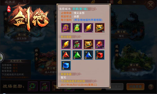 各位江湖好汉占领各大城池,各类攻城奖励自然是少不了的啦!在冰河游戏《剑绝》城池战玩法中,根据玩家积分的多少,最多可以获得强化石、进阶丹礼包、绑定元宝、复活丹与各类二级宝石奖励。而占领城池的帮会玩家,更可每日领取数量不等的美人令、二级宝石礼包与绑定元宝奖励哦!