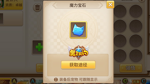 《魔灵契约》的宠物还可以通过穿戴装备来改变外观,甚至可以跟着玩家大大们一起在场景里溜哒~每个宠物都可以装备三件物品:护符、饰物和魔力宝石。护符可以让宠物每天都额外增加20体力,饰物除了增加20体力外,还能让宠物拥有额外的装备造型。至于魔力宝石,就是让宠物出来溜哒用的啦~