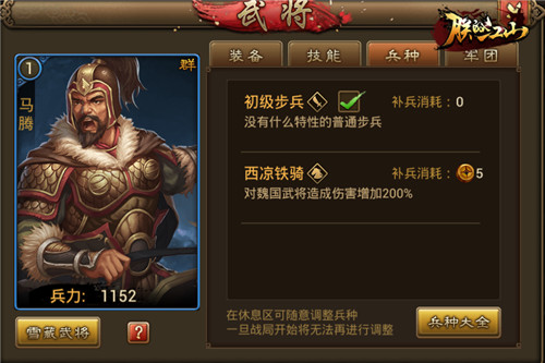 马腾是三国时期西凉铁骑的首领,其人身长八尺馀,性格却贤良忠厚,备受众人尊敬。马腾有多个儿子,其中最为人熟知的是锦马超,马超被誉为三国武力第二,仅次于吕布,追随刘备之后官至骠骑将军。游戏还原史实,这对父子带着他们的“西凉铁骑”叱咤凉州,面对魏国的武将能够增加200%的伤害,魏国杀手名不虚传。