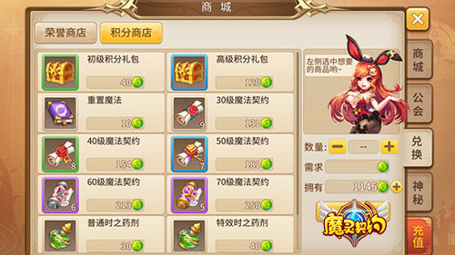 众所周知,《魔灵契约》里召唤魔灵需要消耗相应的魔法契约。但是作为平民玩家,如何快速有效地获得魔法契约呢?实际上,参加高级互动玩法是一个不错的方法哦!完成高级互动玩法中的任务,玩家便可以获得相应的积分。这些积分就可以用来兑换魔法契约啦(当然并不止魔法契约,还有礼包之类的物品,随你喜欢哦)!