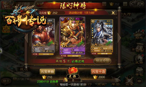 1、限时神将活动。限时神将活动开始期间,可花费元宝随机抽取周瑜或周瑜将魂;